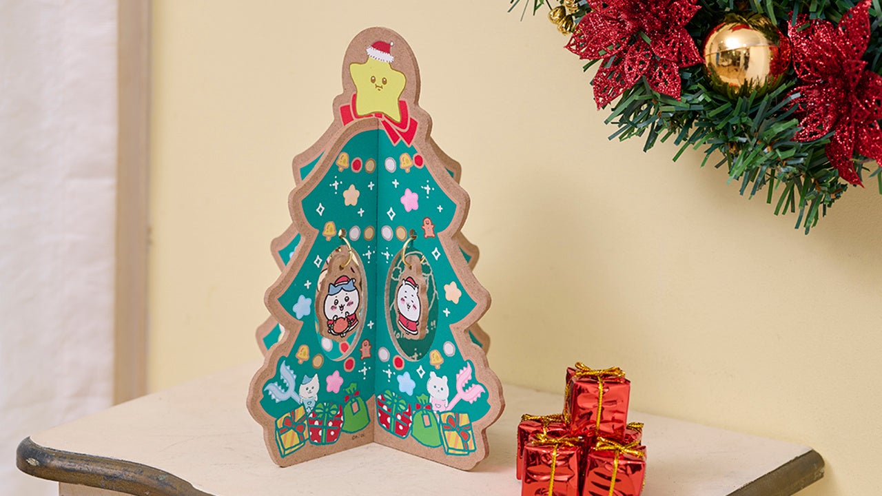 ちいかわ・ハチワレ・うさぎのチャームが付いたウッド素材のクリスマスツリー。