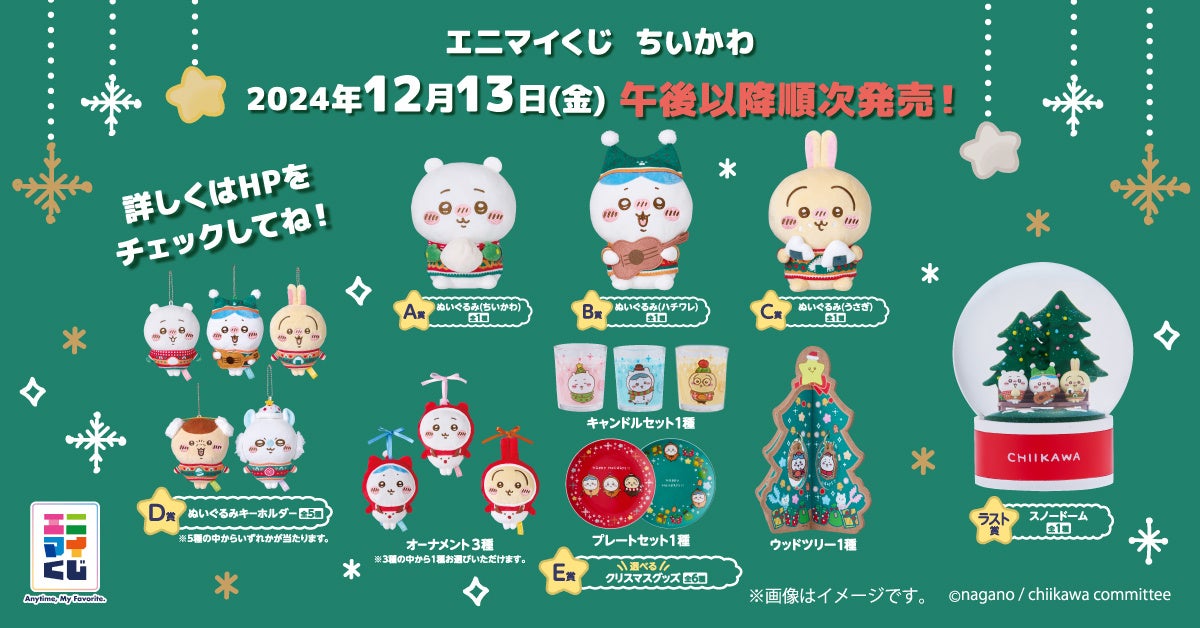 「エニマイくじ」から、ちいかわくじを全国のセブン-イレブン・イトーヨーカドーにて、12月13日(金)午後より順次発売いたします。