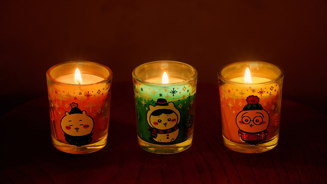 クリスマス衣装を着ているちいかわ・ハチワレ・うさぎのキャンドル3個セット!