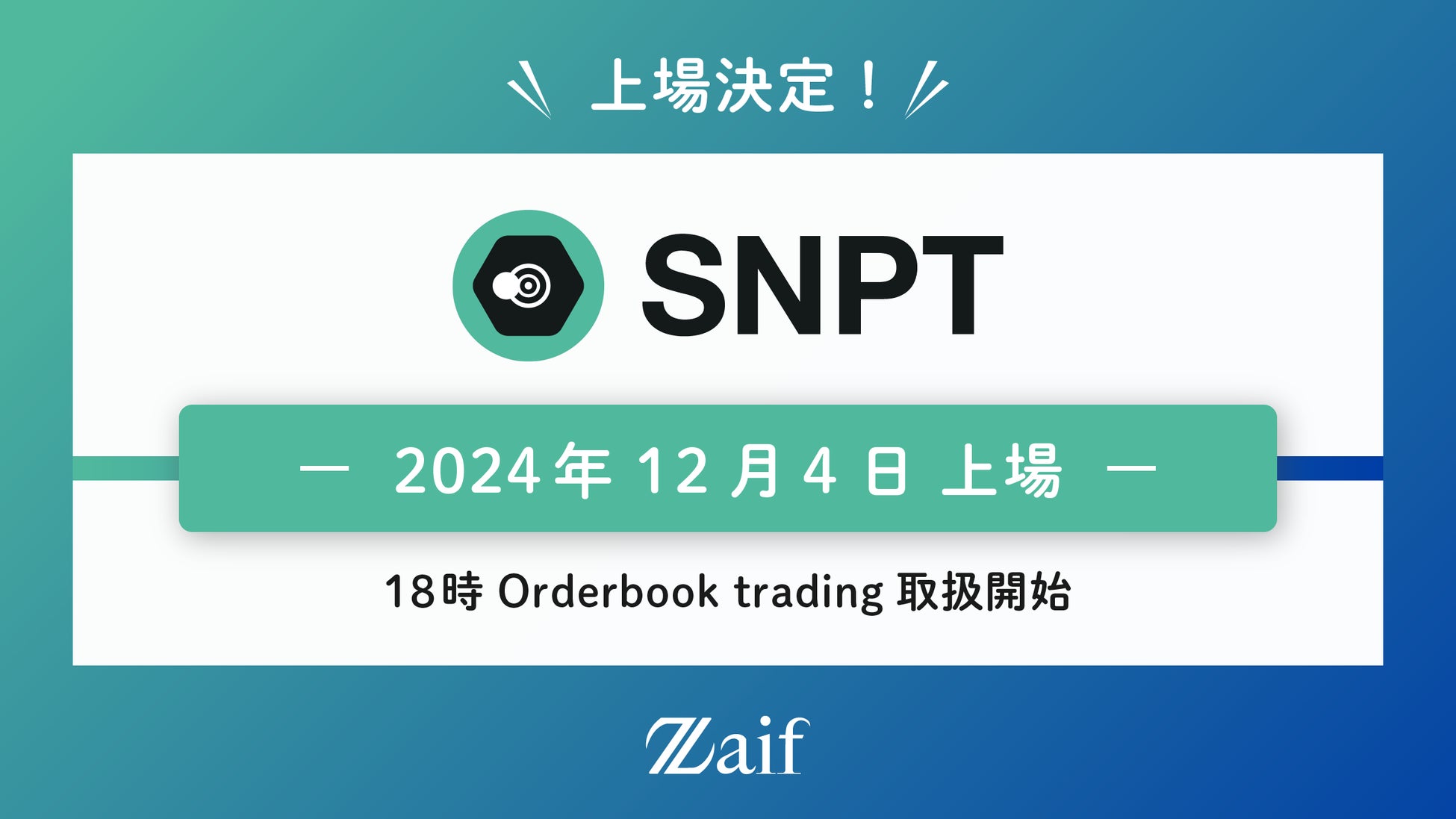 2024年12月4日(水)にSNPTが暗号資産交換所 Zaifに上場しますので、お知らせいたします。