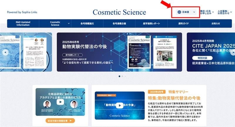 株式会社ソフィアリンクス(東京都港区、代表取締役:三原誠史)は、化粧品研究専門誌「Cosmetic Science」のWebサイトの多言語対応(英語、中国語、韓国語)を開始いたしました。