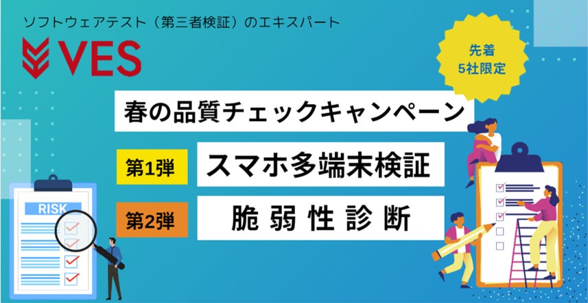 開発からテストまでソフトウェアの品質向上を支援している株式会社ヴェス(本社:東京都渋谷区、代表取締役:中村 慶郎、以下ヴェス)は、経験豊富なテストエンジニアによるソフトウェアテストをお試しいただけるキャンペーンを実施いたします。