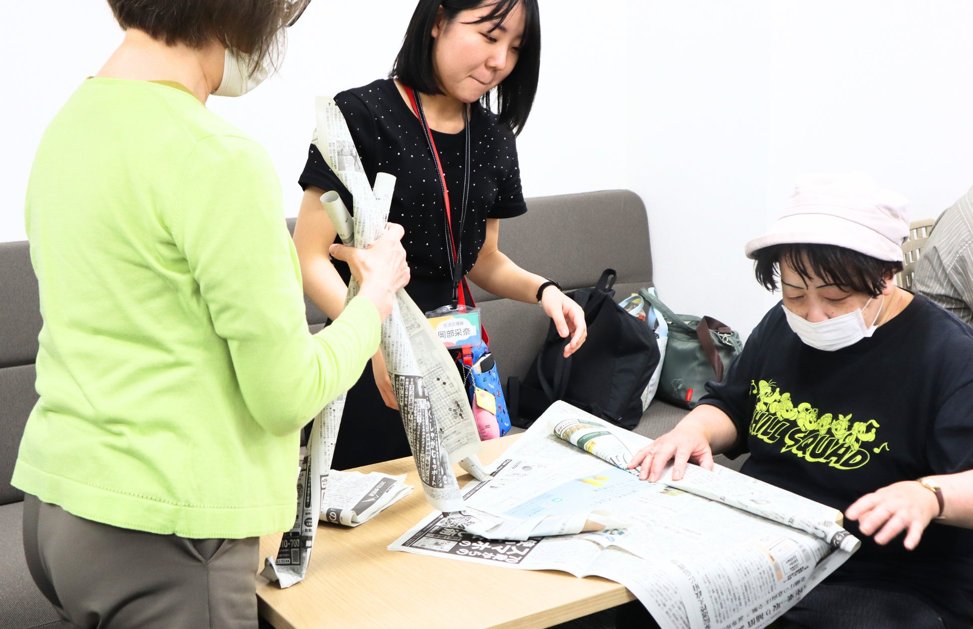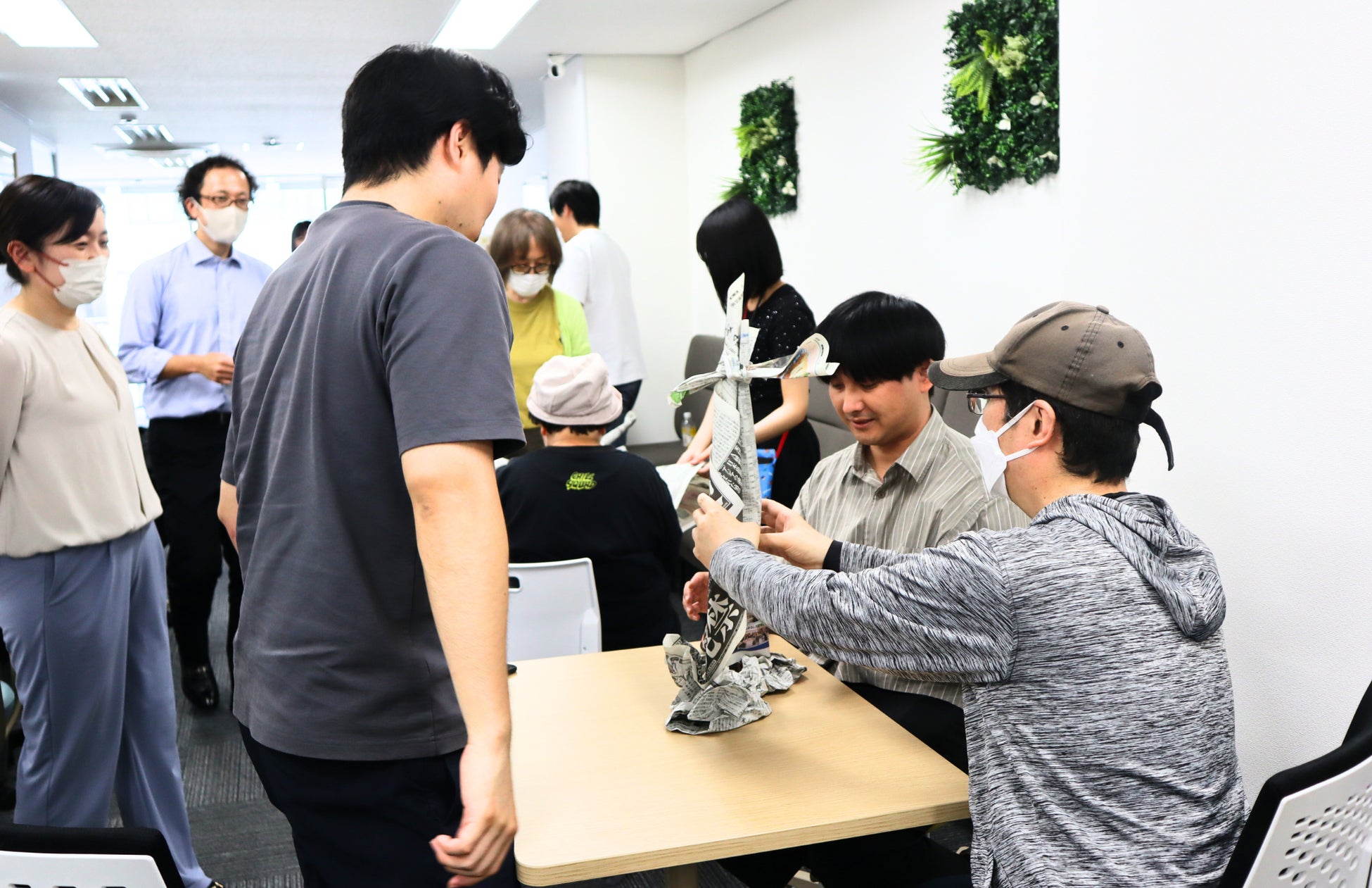 当日は、さら就労塾@ぽれぽれ様が日頃より実施されているプログラムの一環として、「新聞紙でなるべく高いタワーを作る」というグループワークを実施。パートナー(利用者)の皆さまはチームに分かれて試行錯誤しながらタワーの制作に挑み、楽しみながら「協力することの大切さ」や「互いの考えを尊重する姿勢」など、社会で働く上で必要なスキルを体験的に学びました。