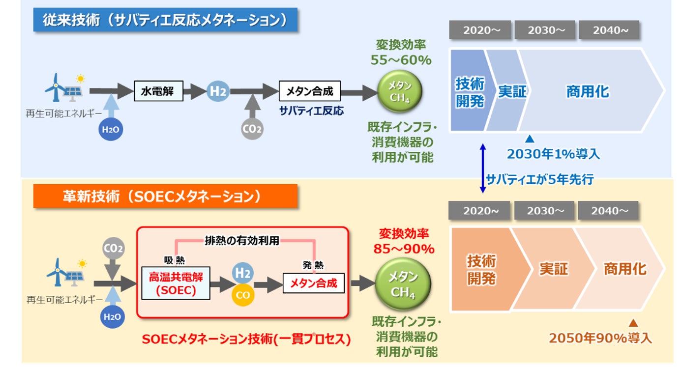 *2:Solid Oxide Electrolysis Cell の略、固体酸化物を用いた電気分解素子。水蒸気やCO2を高温で電気分解するもの