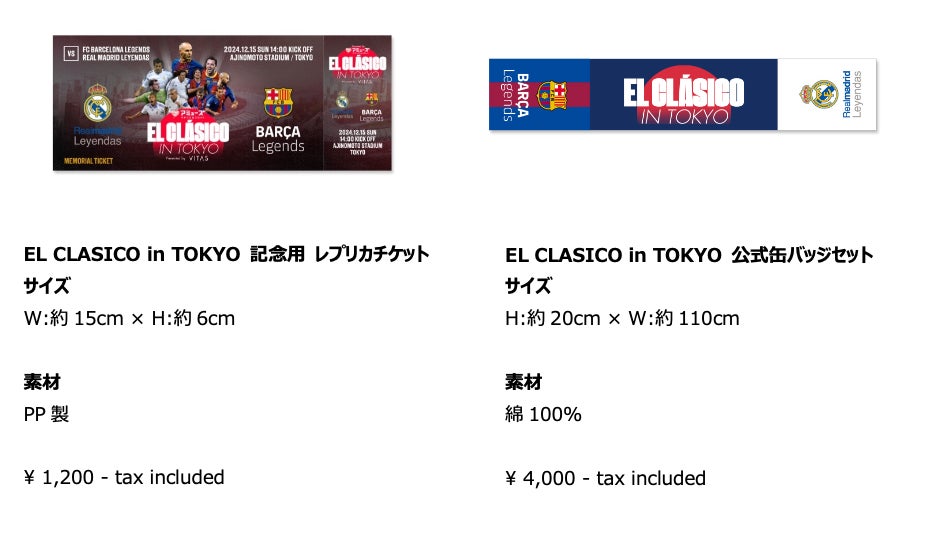 スペインプロサッカーリーグ1部「La Liga」の伝統の一戦、FCバルセロナとレアル・マドリードのOB試合 エル・クラシコ【EL CLÁSICO in TOKYO】 (正式名称:アミューズ EL CLÁSICO in TOKYO Presented by VITAS)を開催する、株式会社SPORTS&LIFE(本社:兵庫県神戸市、代表取締役社長:木下ロベルト)は、昨日より公式グッズ第2弾をECサイトにて販売いたしました。