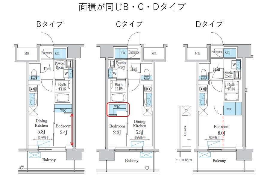 面積帯:24.05㎡~30.08㎡(メーターボックスを含む)