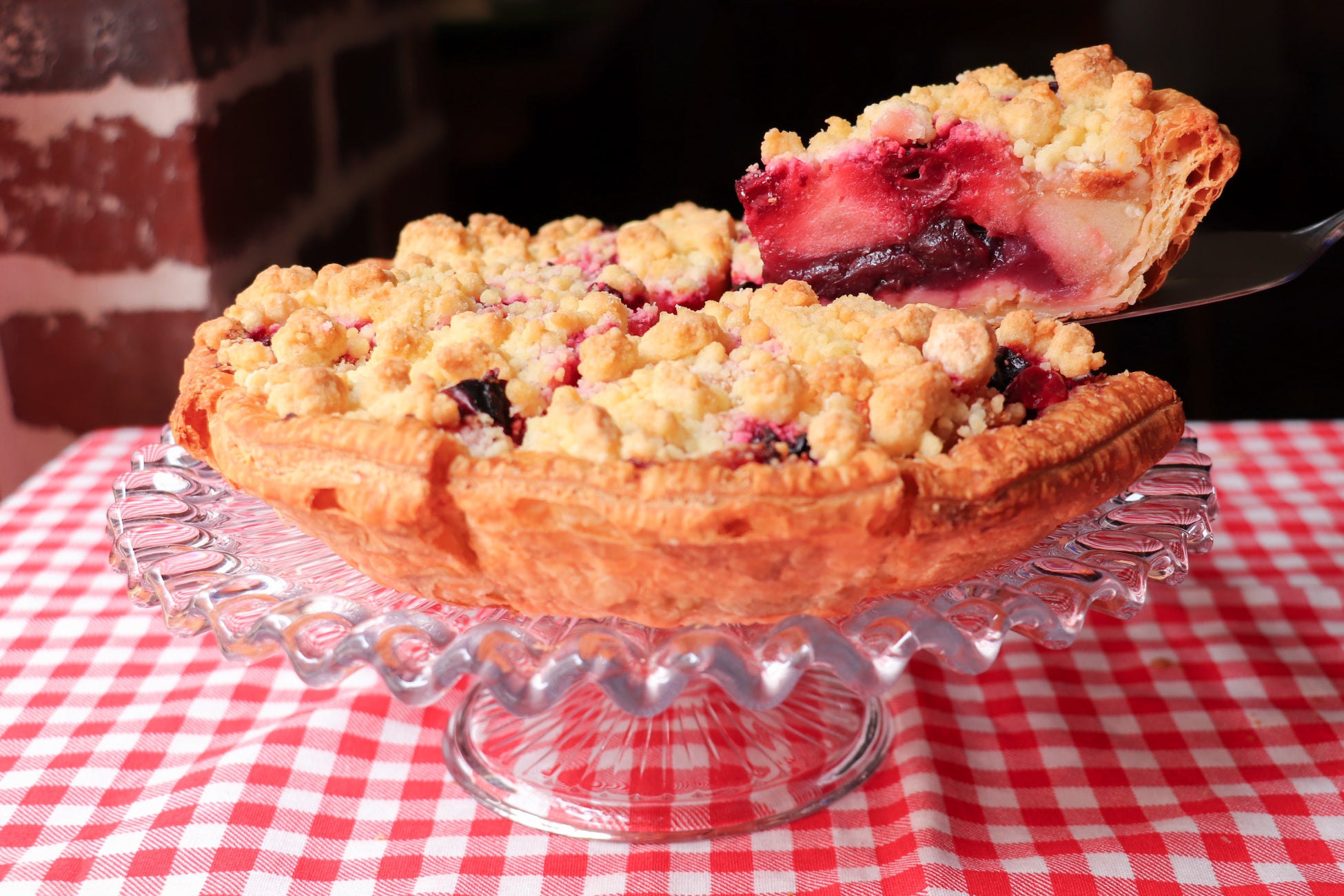 チェリーのジューシーな甘酸っぱさに、クランブルのサクサクとした食感がアクセントとなり、最後まで美味しくお召し上がりいただけます。