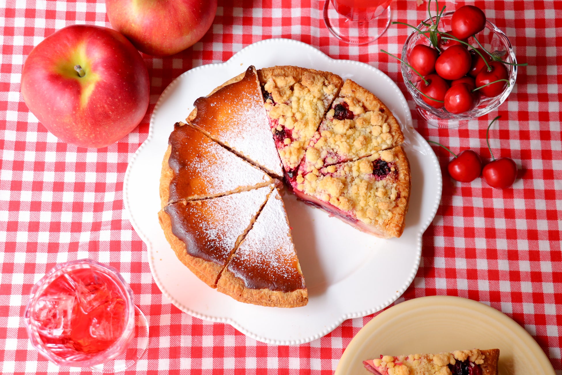 旬を迎えるアメリカンチェリーを主役に、アメリカを象徴するデザート「チェリーパイ」をイメージし、ごろごろチェリーのシロップ煮を自家製カスタードクリームに重ね、たっぷりのりんごと一緒に焼き上げました。