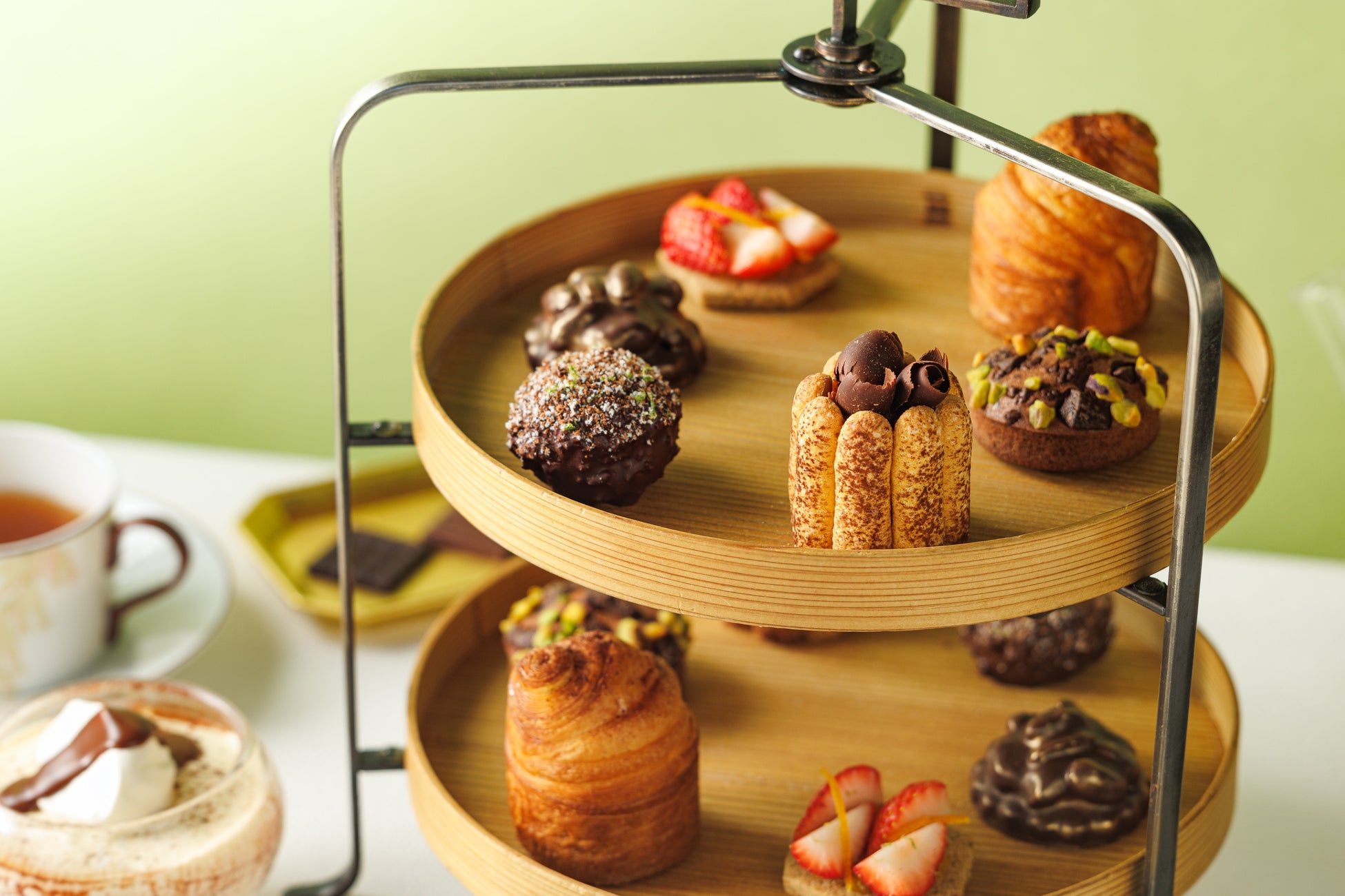 春らしいクリエイションを揃えたショコラ尽くしのアフタヌーンティー。ライムが爽やかな酸味のグラニテとイチゴのデザート、自家製のマーマレード、イチゴとオレンジコンフィを華やかに飾った米粉のビスケット、ココナッツ風味のショコラクリームを入れたシューなど、フレッシュなフルーツをふんだんに使用したデセールにより、来たる季節を存分にご堪能いただけます。