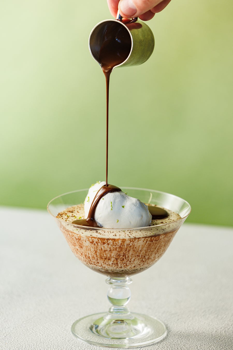 ふわふわのビスキュイ・キュイエール、マスカルポーネクリーム、滑らかなショコラのクリーム、コーヒーとヘーゼルナッツのプラリネを層にしたティラミス。仕上げにホイップクリームをトッピングし、ショコラとコーヒーを合わせたソースをかけてお召し上がりいただきます。クリームのまろやかな味わいと濃厚なショコラとコーヒーのコントラストに、プラリネの食感がアクセントの春のデザートです。