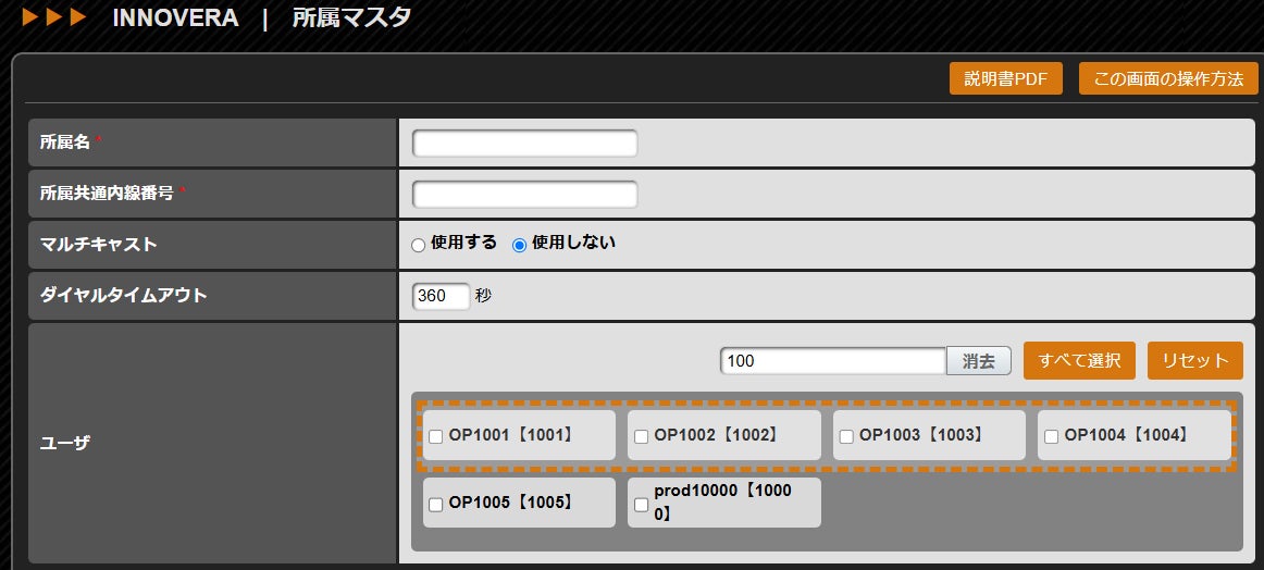 所属マスタのユーザー選択時、ドラッグによる範囲選択と検索機能が追加されました。