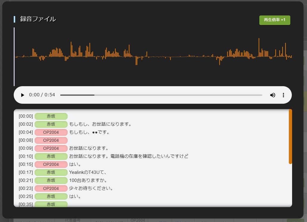 テキスト化した通話録音の再生画面に発信元、着信先の情報を表示できるようになりました。