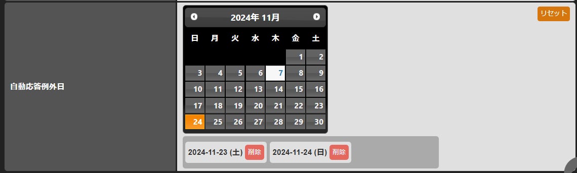 INNOVERAでは様々な便利な機能が実装されており、その機能のON/OFFをスケジュール設定することができます。例えば、普段は自動応答で対応しているが、ある特定の日だけは自動応答を解除したい、といった例外日がある場合、簡単にワンクリックで例外日を追加、削除ができるようになりました。