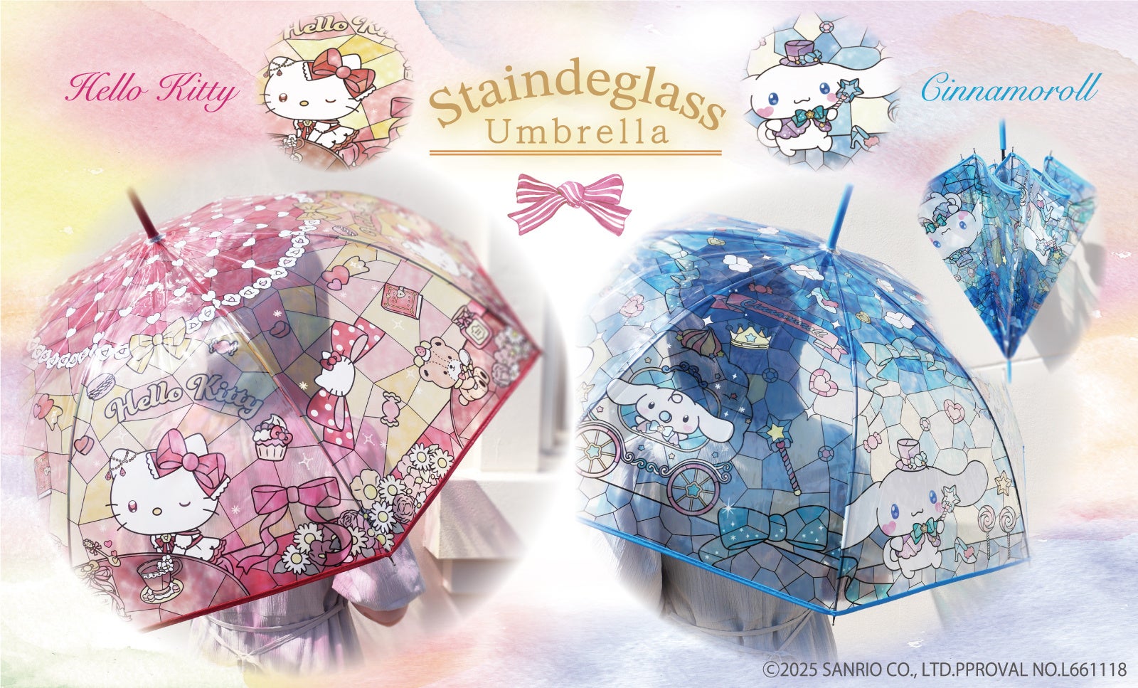 ステンドグラス風アートが幻想的な、『ハローキティ』と『シナモロール』のビニール傘