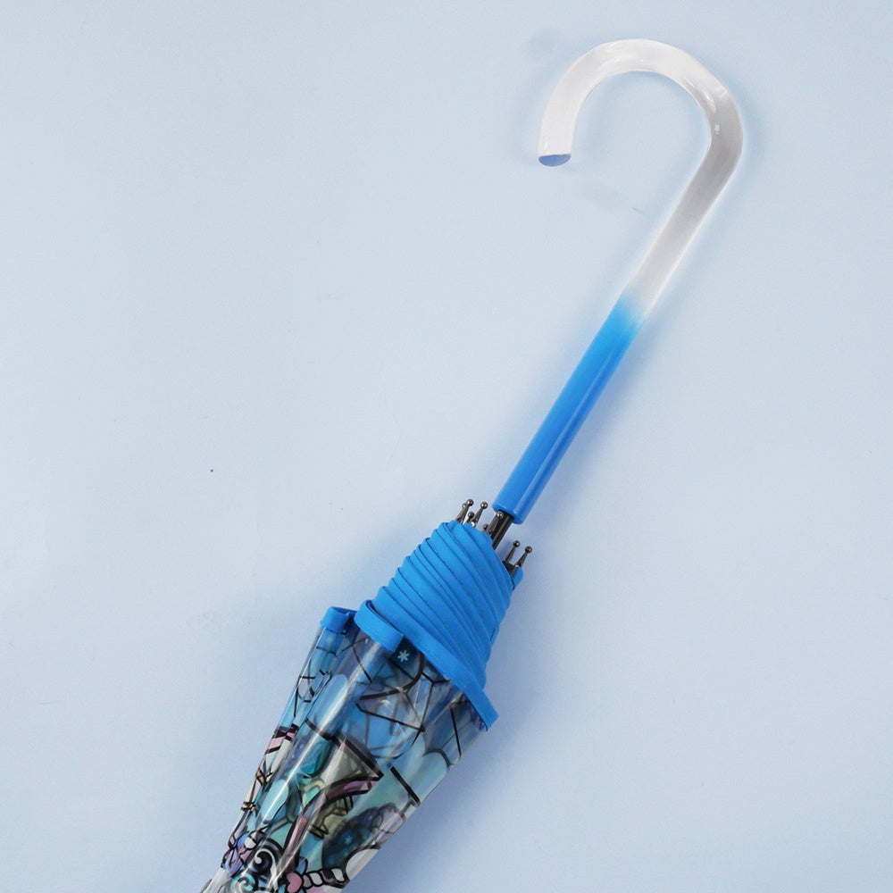 本シリーズは、ステンドグラスのような透明感と華やかさを兼ね備えたデザインが特長のビニール傘。