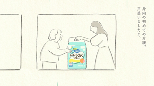 WEB動画は、介護をしている多くの方から花王によせられた「実際の声」をもとにしたラジオ番組風の構成。出演はシンガーソングライターの白井貴子さんです。ご自身も、お仕事をしながら12年間お母様の介護をされた経験をお持ちです。動画内では白井さんの体験を織り交ぜたコメントや、いままさに介護に向き合っている方へのメッセージも。介護には大変なことが多く、花王にできることはほんの一部かもしれません。それでも、製品を通じて日々を少しでも快適に過ごせるよう応援したい…そんな思いを、やさしいタッチのアニメーションでお伝えします。