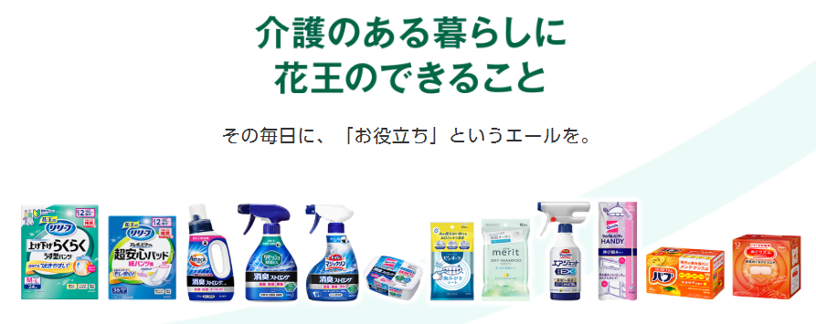 そのような社会背景を受け、花王は2025年4月より「介護に花王のできること」という取り組みを開始しました。在宅介護では、介護に直結する紙パンツ等はもちろん、衣類や寝具の尿臭をすっきり落とせる洗剤、忙しくても手間なく効率的に掃除を行える住居用洗剤などがお役に立てる場面も。