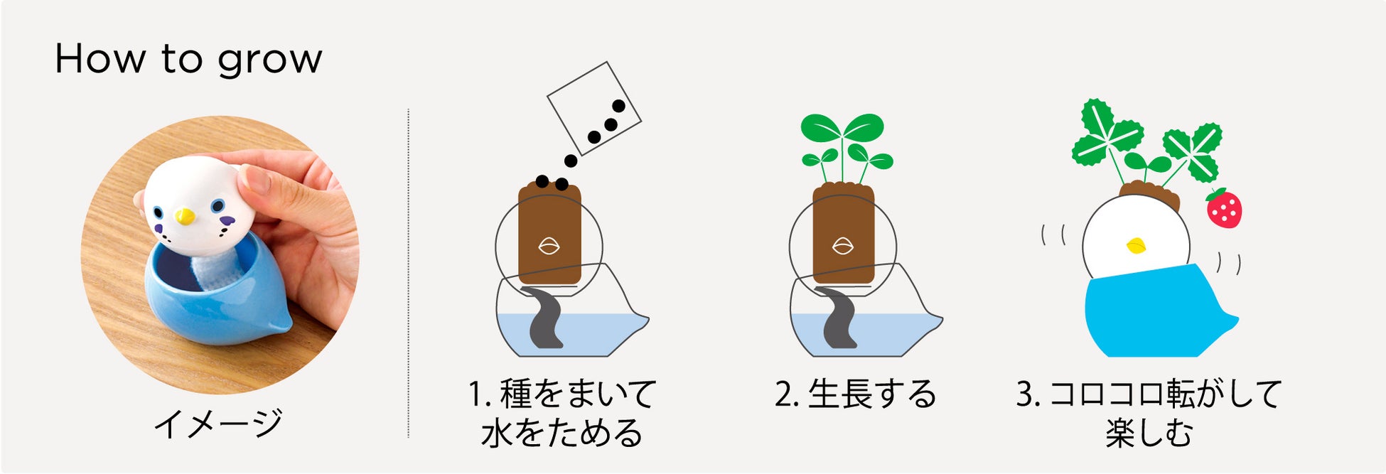 コロコロバードは、丸いフォルムと、やわらかい表情が魅力の陶器製栽培キットです。昨年好評だった「コロコロキャット」に続き、シリーズ第2弾として“鳥モチーフ”の新作を展開します。[コロコロキャット: https://seishin-plus.ocnk.net/product/498 ]