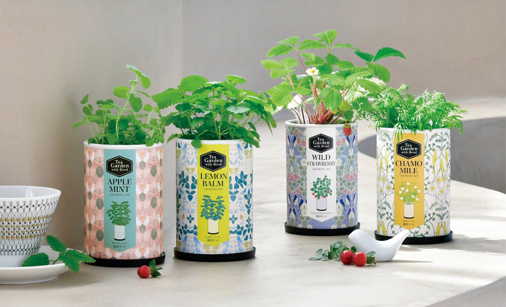 「ティーガーデン」は、筒状のペーパーポットにインナーポットを組み合わせた、手軽に楽しめる栽培キットです。小鳥のさえずりが聞こえてきそうな庭で、ティータイムを楽しむ情景をイメージし、デザインを描き起こしました。香りを楽しめるハーブを中心にラインナップし、日常のリラックスシーンに取り入れやすいシリーズとして仕上げています。