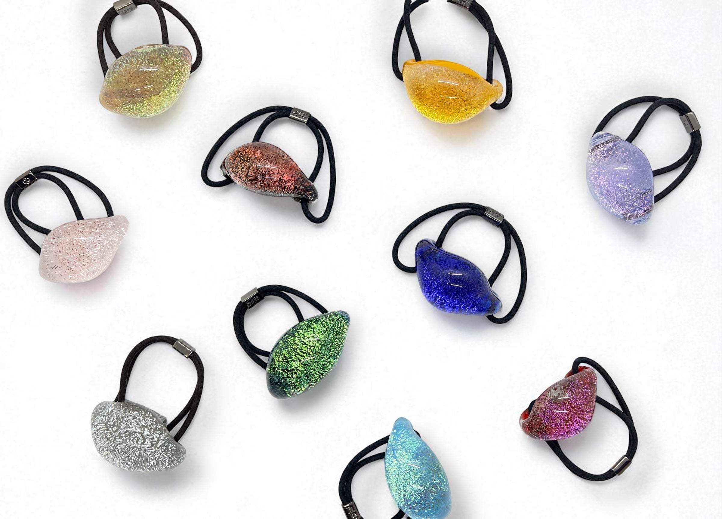 「髪にアート」をテーマにガラスアーティストが一瞬一瞬ガラスと向き合った偶然の産物、作り手の緊張感とドラマが詰まった、アート作品として生み出されてきたGlass Pony。工芸品とも言える作品の過去からのアーカイブをお届けします。ガラスロッドをバーナーで溶解しながら巧みに組み合わせて制作されるGlass Ponyは、 ガラスアーティストにより一つ一つ絶妙な色や柄を生み出されるため他の素材では味わえない アートな魅力が詰まっています。クラフトマンの作品にかける想いとテクニックで生まれる微妙な個体差こそが 一瞬一瞬ガラスと向き合った偶然の産物、作り手の緊張感とドラマが詰まった、アート作品として生み出されます。2つと同じ作品はなく、全て1点物になります。