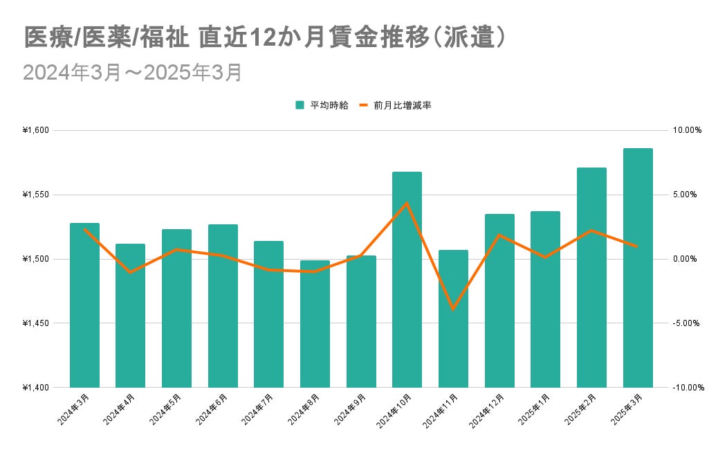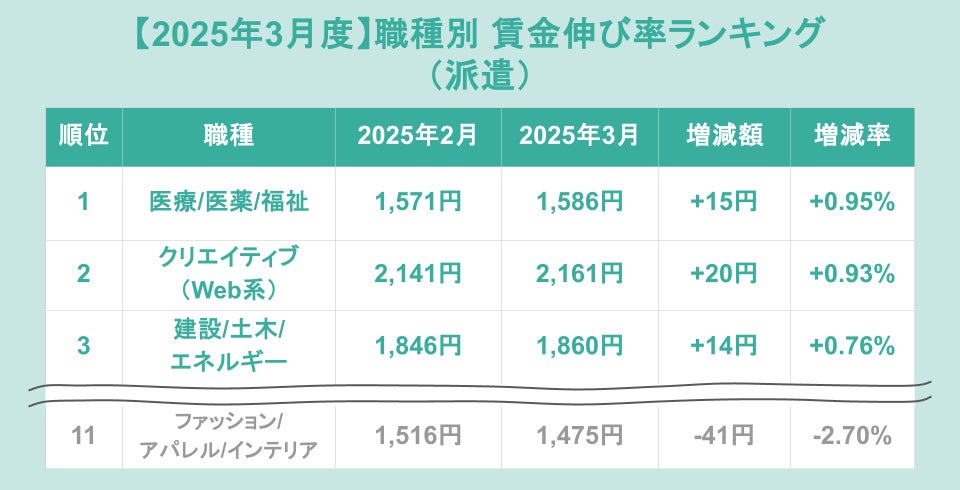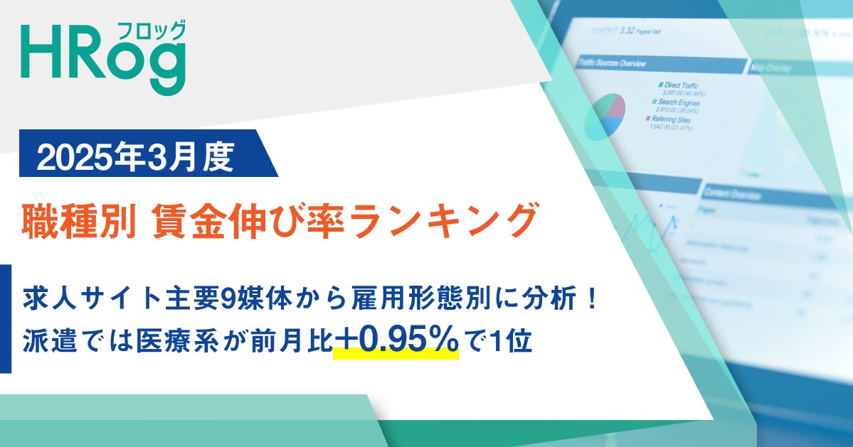 求人サイト主要9媒体から雇用形態別に分析!派遣では医療系が前月比+0.95%で1位【2025年3月度 職種別 賃金伸び率ランキング】