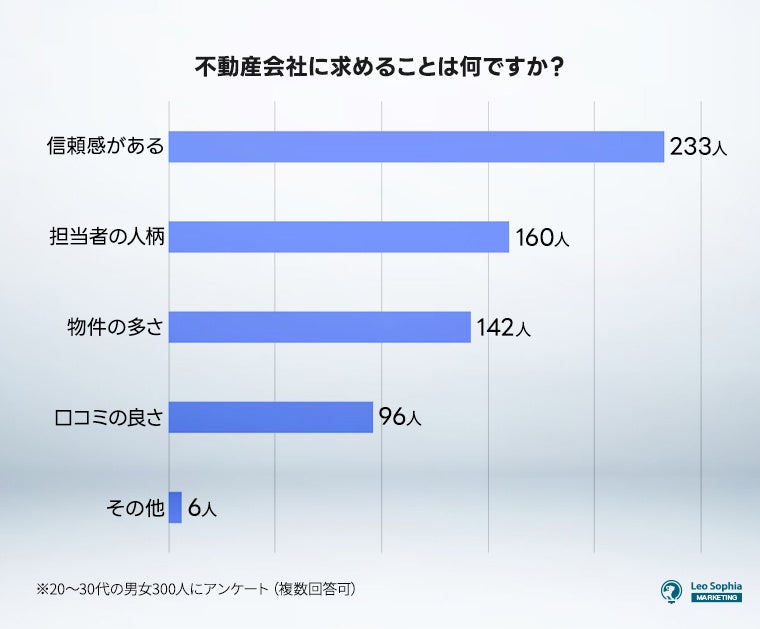 不動産会社に求めるのは「信頼感」と「担当者の人柄」