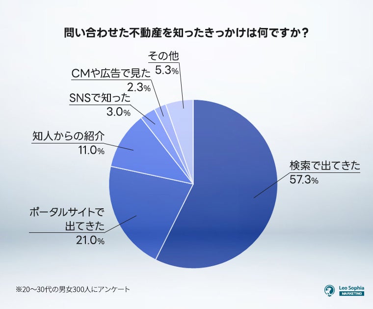 調査の結果、5割以上の人が「検索」を通じて不動産会社を見つけていることが分かりました。