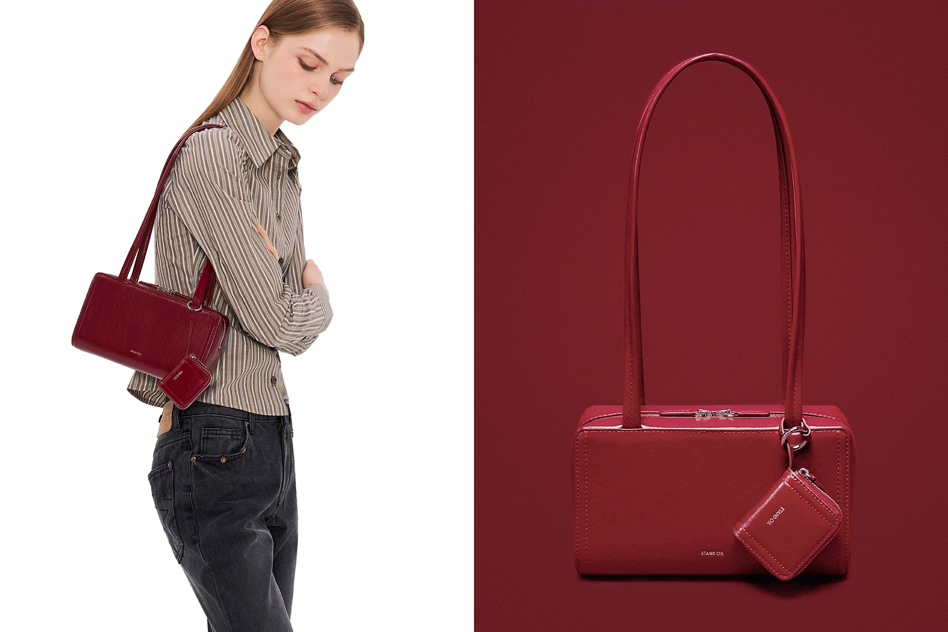 すでに多彩なカラーで展開している「ポストバッグ」に、視線を惹きつける深みのある“レッドワイン”が新登場。スクエア型のボックスシェイプが印象的な「ポストバッグ」は、同時発売の「ポストポッド」と組み合わせることで、より洗練されたコーディネートが完成します。長めのストラップで持ちやすく、シンプルながらも上品なデザインが魅力となっており、新色の“レッドワイン”は、落ち着いた深みのあるトーンで、大人のムードを引き立てます。