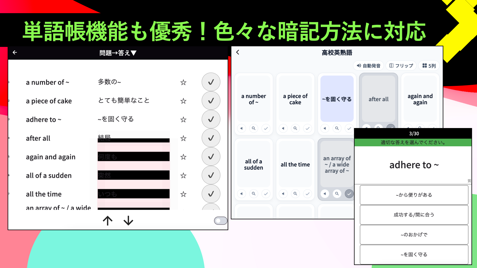 覚えられないものがあれば、その場ですぐに暗記の形にできる。