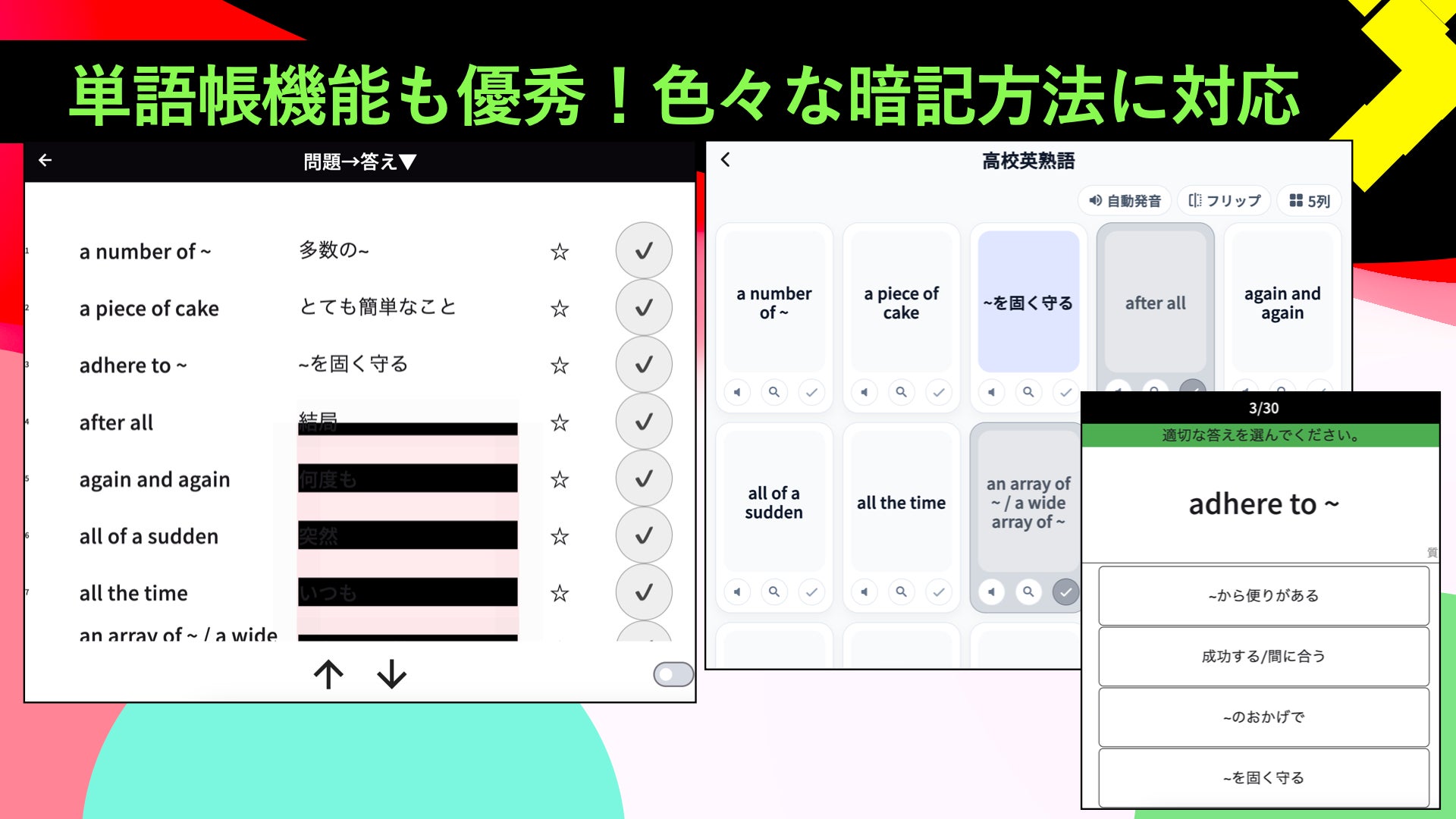 ・学生は中高英単語を単語帳で素早く覚えられるようになる。
