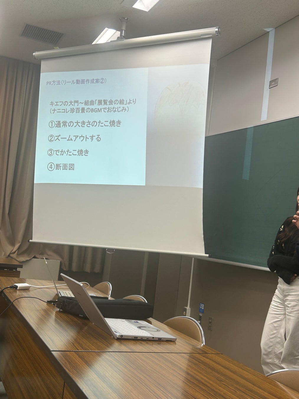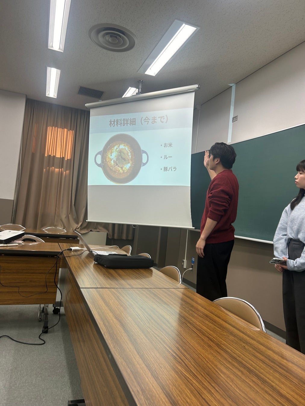 ゼミ生は2024年度春学期より、食に関する消費者行動研究を学びつつ、9月より東山市場内店舗および関西学院大学内店舗の課題を分析し、カレーと鉄鍋を活かしたメニューの探索と開発に着手しました。ターゲット顧客層に受け入れられるカレーを活用したメニューの開発を目指して3つのチームに分かれて取り組みました。各チームで議論を重ねコンセプト発表を経て、11月にチームごとに最終発表を行いました。選考にあたっては本学の教員、株式会社Mandrillusの社長、社員が参加しました。