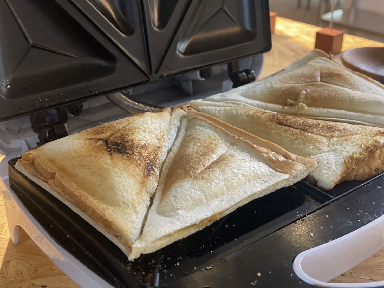 ③カレー屋さんの特製ホットサンド(神戸市兵庫区の東山商店街内「マンドリルカレー 東山商店街店」で販売)