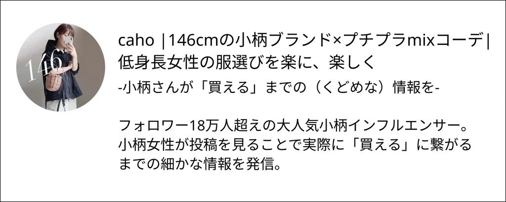 そんな声に応えるため、自身も146cmと小柄であり、小柄女性やママさんたちから絶大な支持を集める人気インフルエンサーcahoさんとコラボレーションし、オケージョンアイテムをご用意しました。