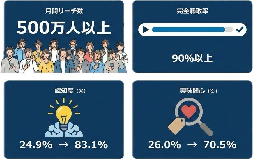 ロボットスタートが提供するポッドキャストネットワークは、高い広告効果を誇ります。