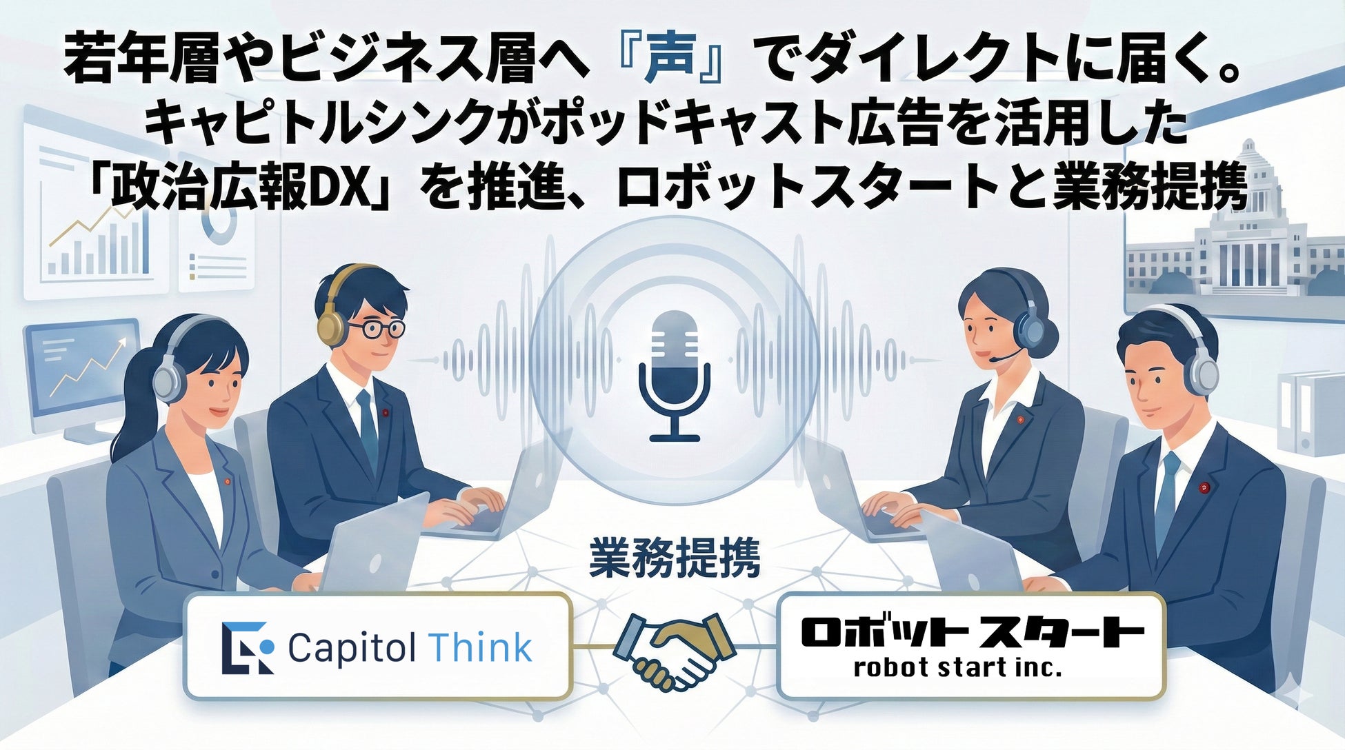 政治広報に「声」のDXを。キャピトルシンク、ロボットスタートと提携し、若年・ビジネス層へ届く「ポッドキャスト政治広告」の提供を開始