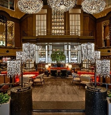 ロビーから8階まで吹き抜けるアトリウムには、11万5,000個のスワロフスキー®・クリスタルをあしらった3基のシャンデリアが輝き、華やかでエレガントな空間を演出しています。