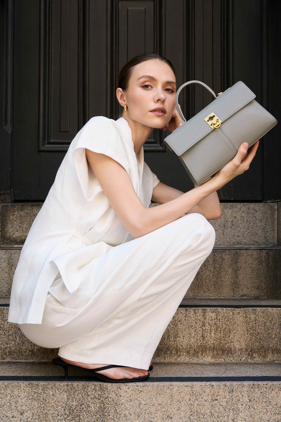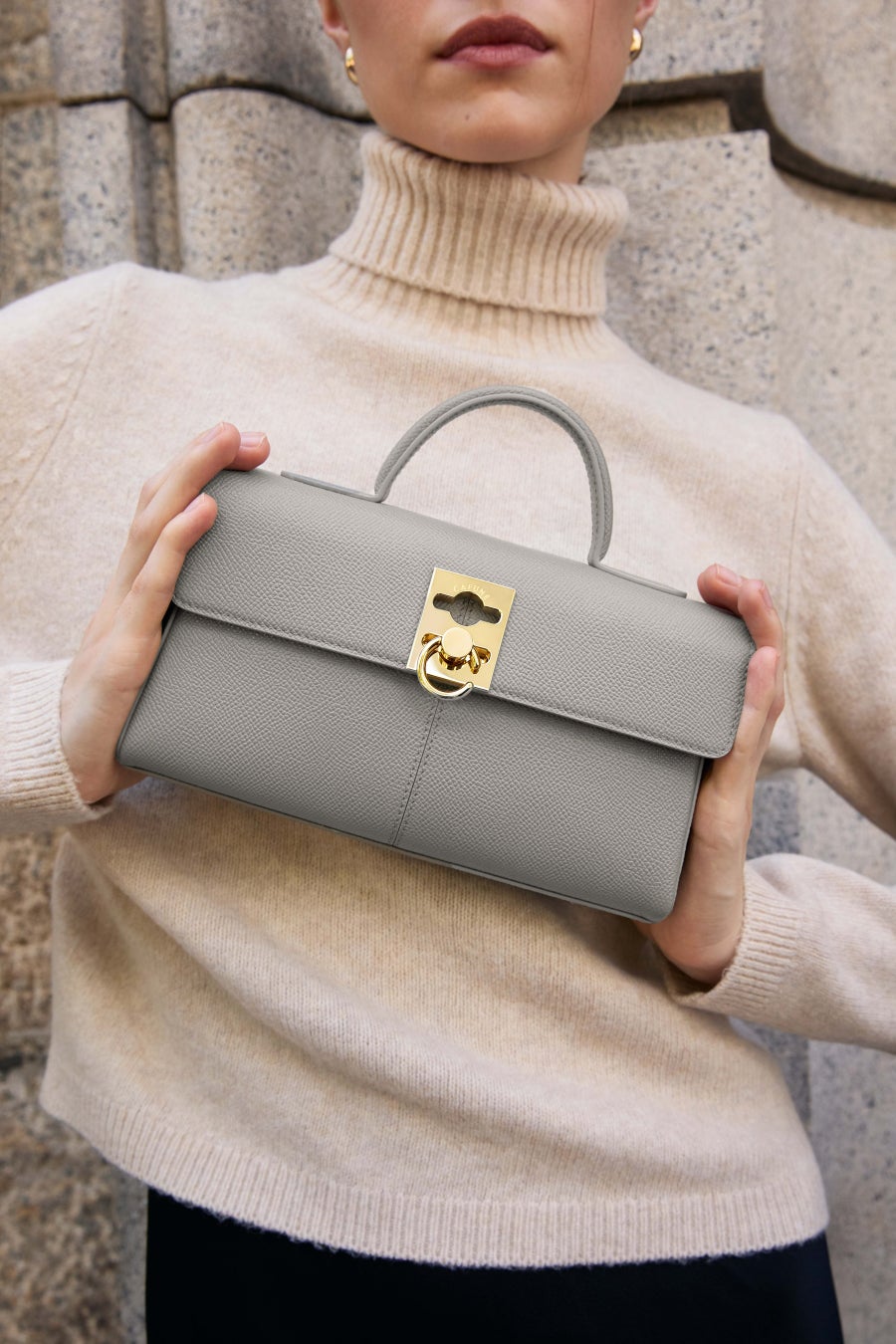 新色ののスモークカラーはゴールドのチェーンや金具との相性も抜群。エレガントからマニッシュまで、幅広いスタイルにマッチし、フォーマルにもカジュアルにも演出できるフレキシブルなカラーです。