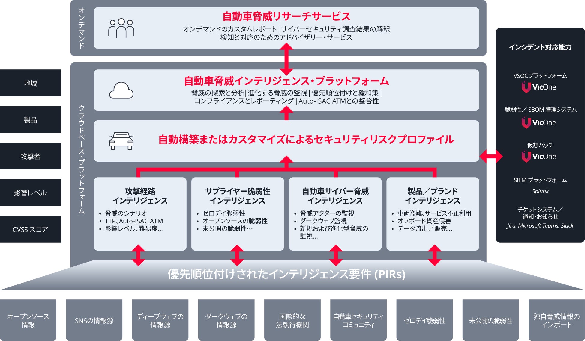 VicOneは、これからの自動車を守るというビジョンを持ち、自動車産業向けに幅広いサイバーセキュリティソフトウェアやサービスを提供しています。自動車メーカーの厳しい要求に応えるために開発されたVicOneの各ソリューションは、現代の車両が必要とする高度なサイバーセキュリティの各種要件に適合し、大規模な運用にも応えるように設計されています。VicOneは、トレンドマイクロの子会社であり、トレンドマイクロが30年以上にわたって培ってきたサイバーセキュリティ技術をベースにしています。自動車サイバーセキュリティのグローバルリーダーとして、サイバーセキュリティにおける独自の深い知見を活かした先見性を提供し、お客様が安全でスマートな車両を開発できるよう支援しています。詳細はhttps://vicone.com/jpをご覧ください。