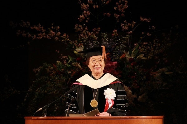 また、谷本榮子理事長・総長は「関西外大は高度な言語力だけでなく、豊かな知識や教養、多文化共生社会に対応できる力を育みます。基本となっているのが国際交流です。これまで50年間で5万6000人の学生を世界に派遣し、2万3000人の留学生を受け入れてきました。皆さんの夢や目標の道は大きく開かれています」と話しました。