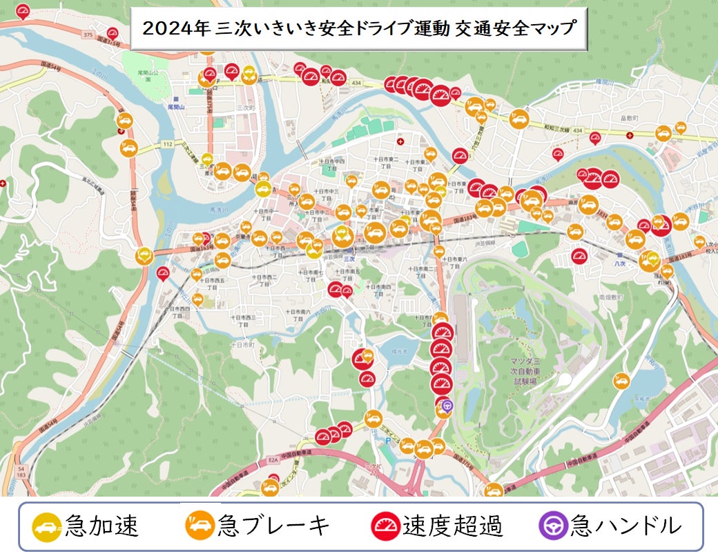 この「交通安全マップ」は、同分科会が三次市と取り組む高齢ドライバーの安全運転継続を支援する仕組みづくりを目指す実証実験「三次いきいき安全ドライブ運動」の一環として作成したものであり、構築した仕組みやノウハウは全国への普及を目指すものです。