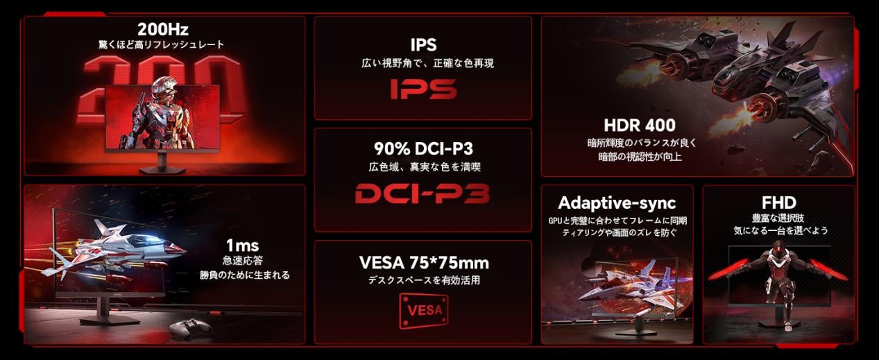 主なスペック:24.5インチ / 200hz / FHD / HDR400