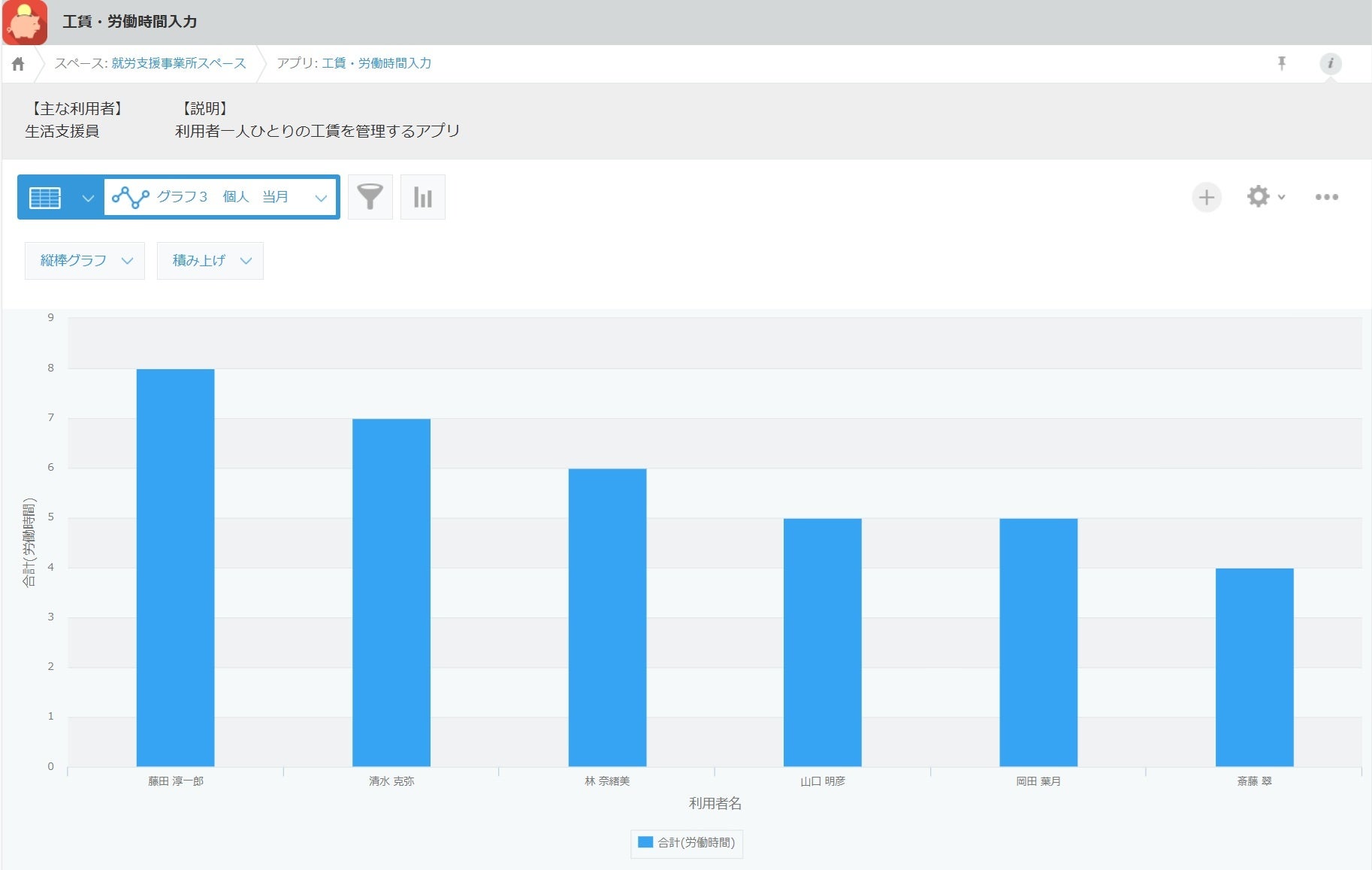 工賃・労働時間入力:その週・月の工賃や労働時間を自動グラフ化