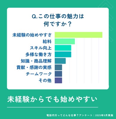 最大の魅力は「未経験でも始めやすい」ことです。6 割以上がこれを理由に挙げています。さらに、給与面の安定、柔軟な働き方、実務スキルの習得と、経済的・時間的・成長的な側面がバランスよく満たされている点も魅力的です。
