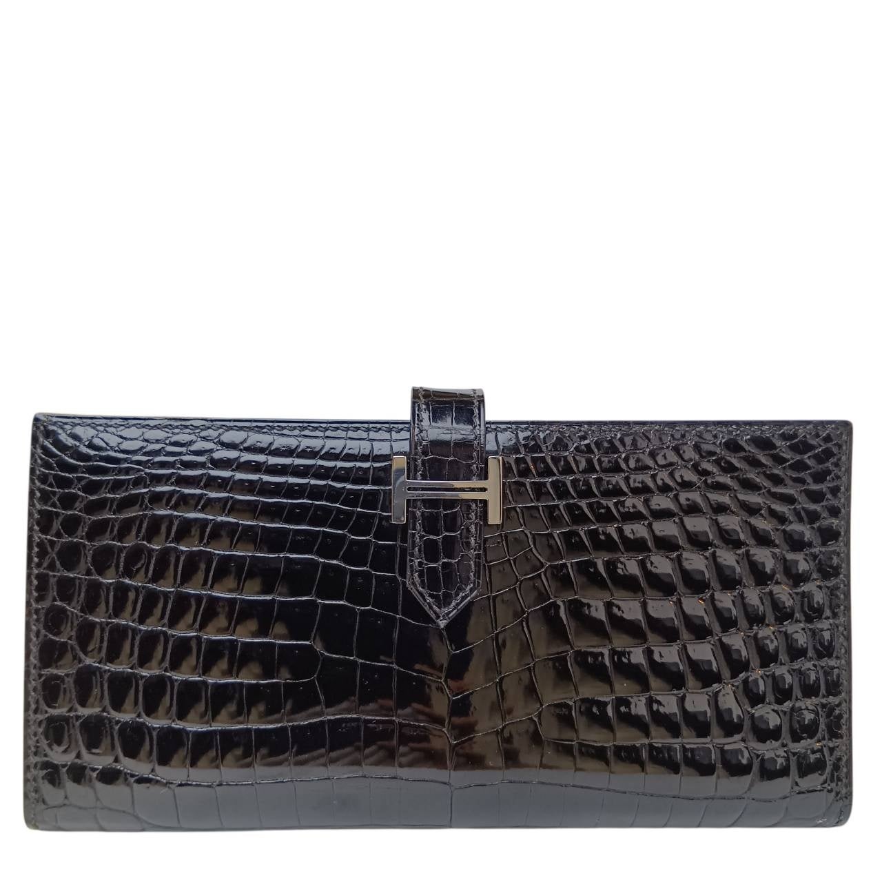 エルメス 長財布 シルバー金具 クロコダイル エキゾチックレザー メンズ レディース 黒 ブラック H 2004年