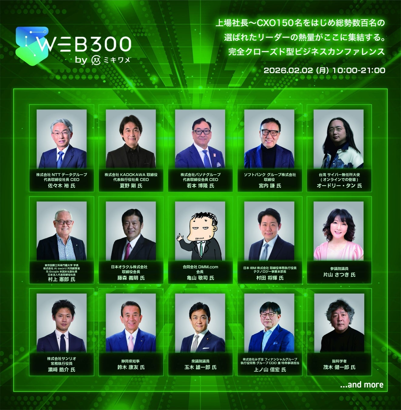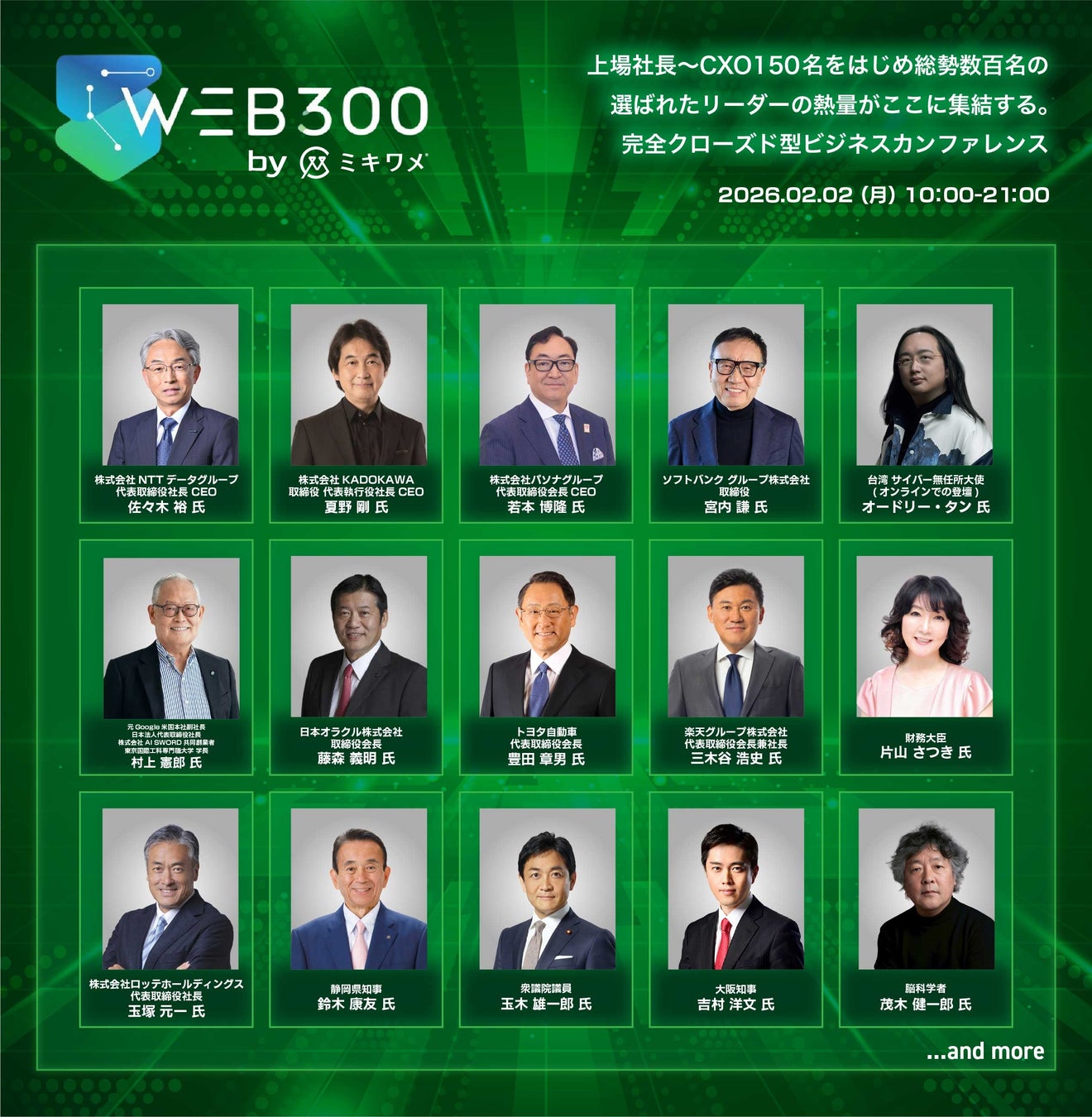 国内最大級のAIコミュニティ「WEB300」(主催:株式会社AI sword)は、各業界の経営層や第一人者、政界のリーダー300名が一堂に会する、完全クローズド型のビジネスカンファレンス「WEB300 Conference」SUPPORTED BY ミキワメ