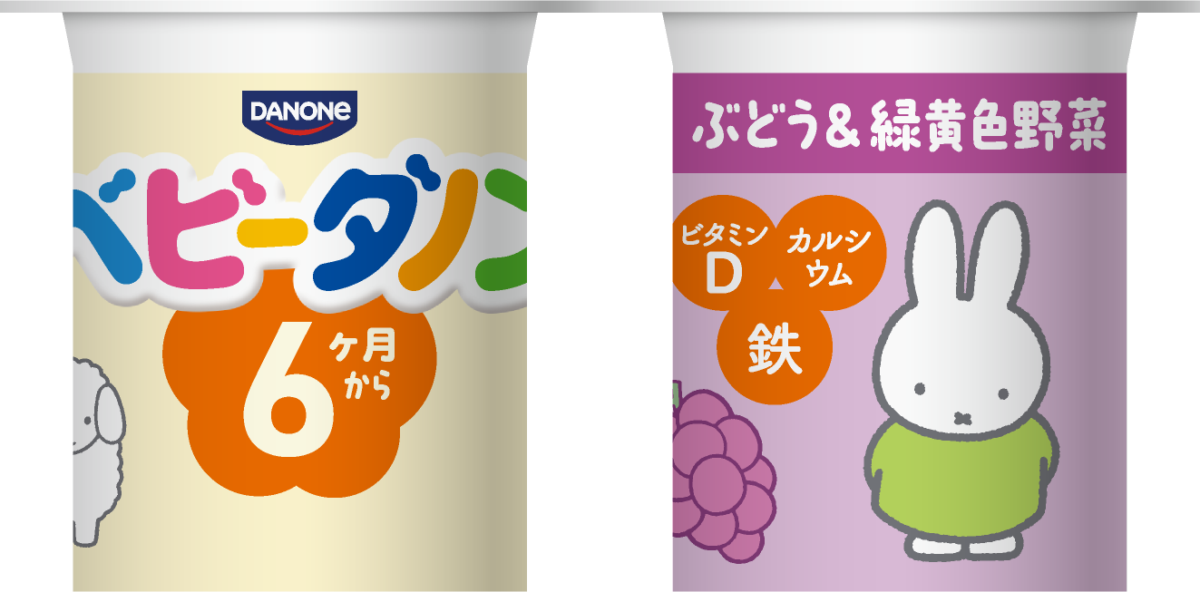 ベビーダノンは、日本において1993年に発売されて以来、30年以上にわたり、離乳期の赤ちゃんを育てるご家庭からご支持をいただいているロングセラーブランドです。生後6ヶ月頃からの離乳期の赤ちゃんの栄養バランスを考えたヨーグルトで、カルシウムをたっぷり含んでいます。また、栄養面でのサポートだけではなく、ミルク以外の味や食感、スプーンでの食事などに慣れるための食品としてもぴったりです。4種類のフレーバーをご用意しており、「プレーン・乳糖の甘みだけ」は離乳期の赤ちゃんの最初のヨーグルトにおすすめです。また、「いちご」「もも&緑黄色野菜」「ぶどう&緑黄色野菜」は野菜や果汁をピューレ状にし、異なる食感をお楽しみいただける2層仕立てです。ごはんの一品としてはもちろん、食後のデザートや間食(補助食)などにもご利用いただけます。