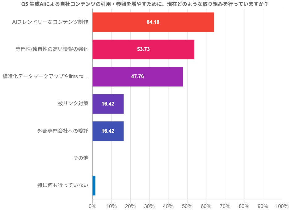 調査結果⑤ 生成AIによる自社コンテンツの引用・参照を増やすために、現在どのような取り組みを行っていますか?