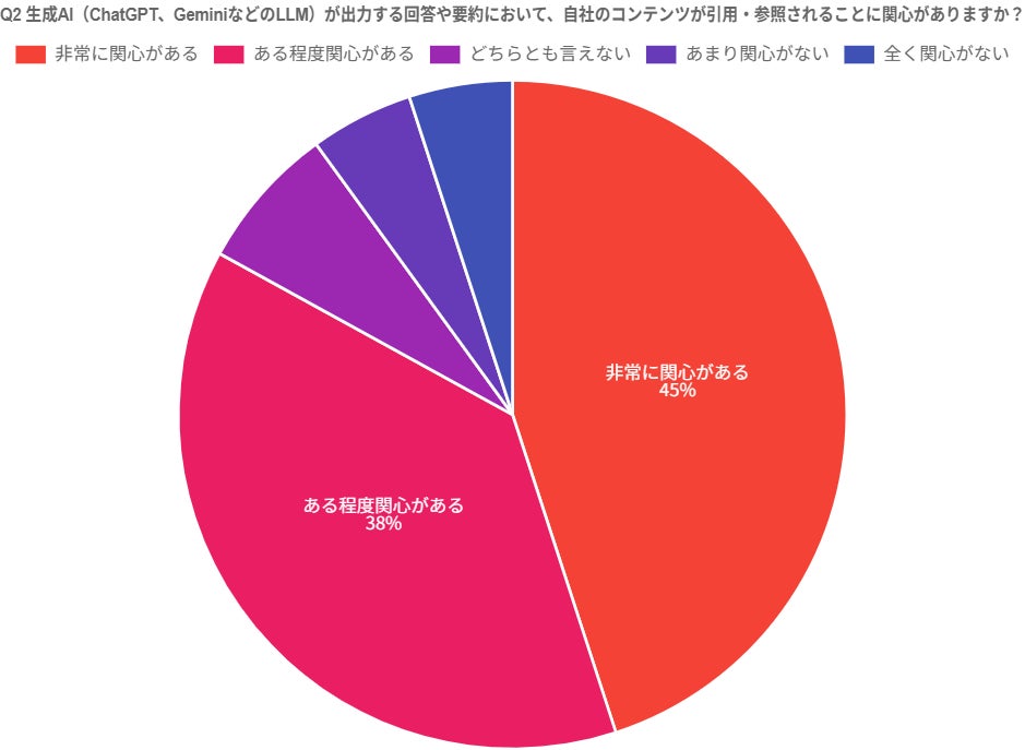 調査結果②生成AI(ChatGPT、GeminiなどのLLM)が出力する回答や要約において、自社のコンテンツが引用・参照されることに関心がありますか?