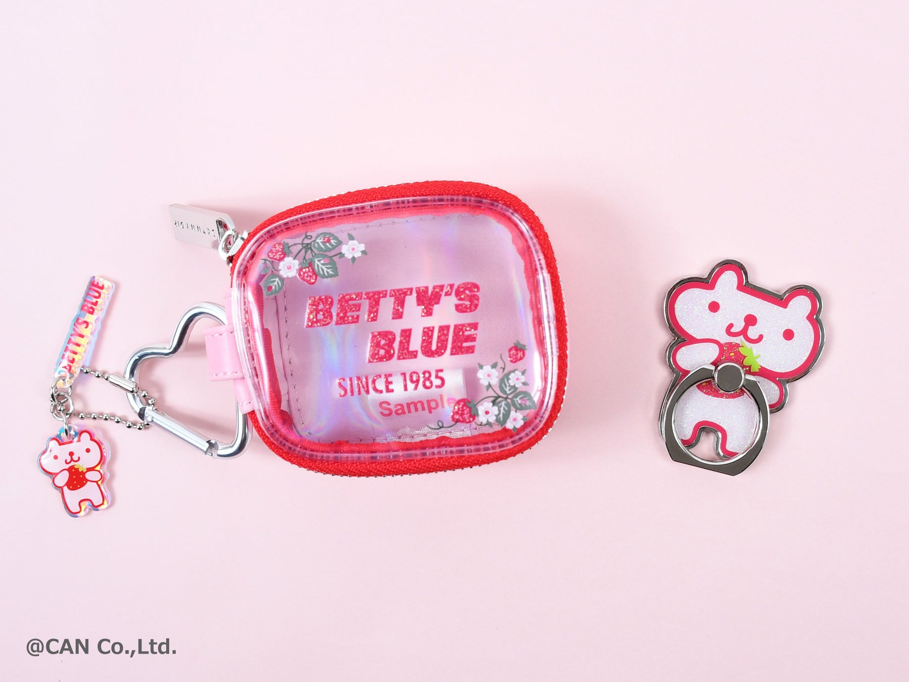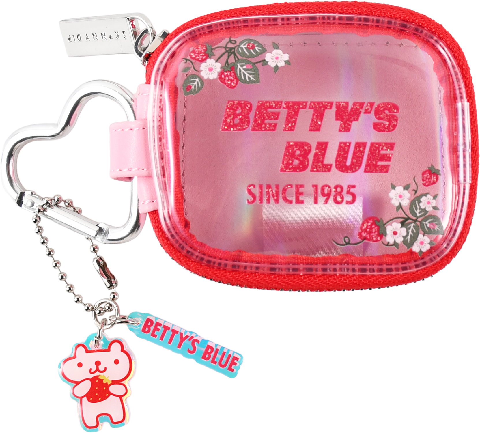 BETTY’S BLUEのロゴとショッパーアートを組み合わせたイヤホンケース入れ。ワイヤレスイヤホンはもちろん、リップや小銭などの小物を収納できる、実用性の高いカラビナ付きミニポーチ型イヤホンケース。バッグチャームとしても可愛く使えるアイテムです。
