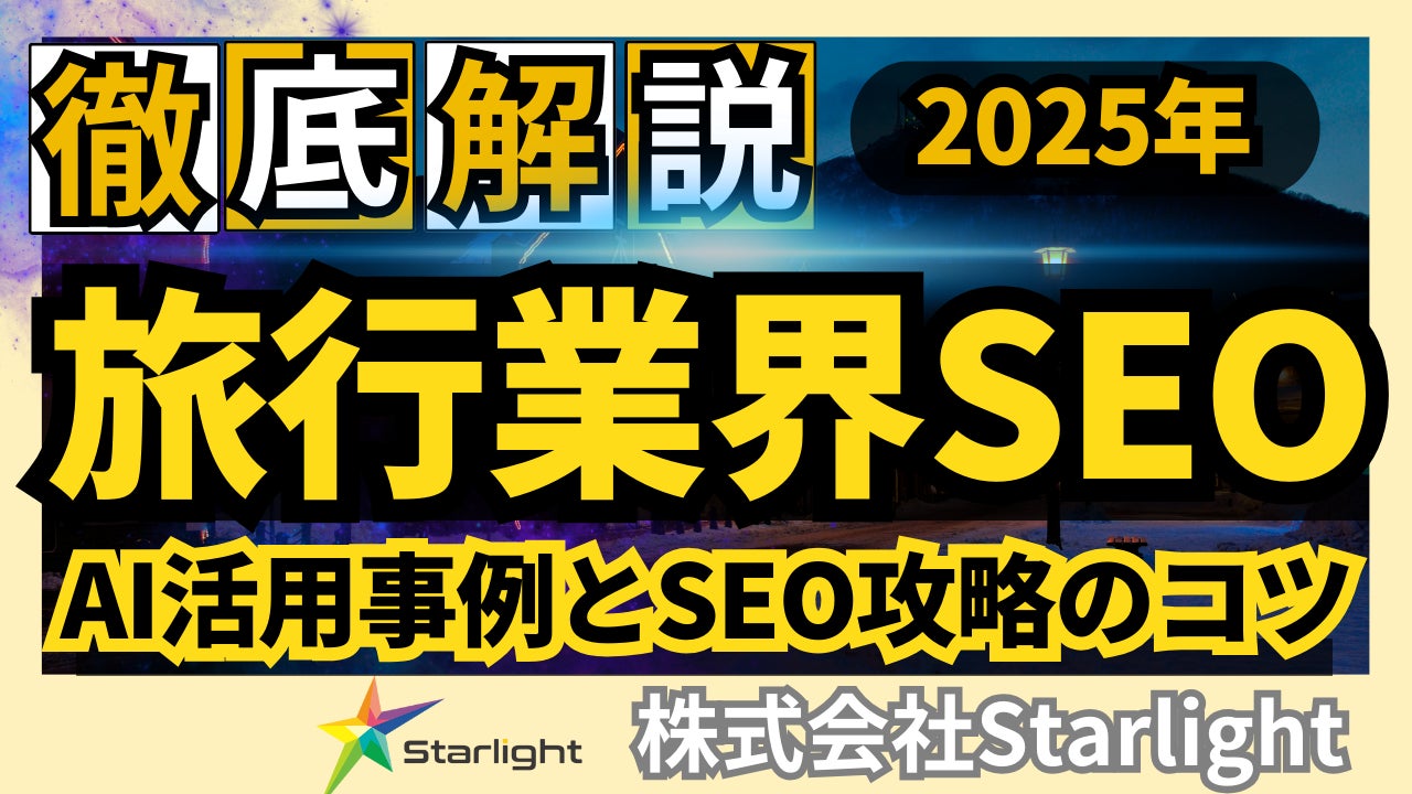 株式会社Starlight(本社:東京都豊島区、代表取締役社長:黒田 真乃介、以下「当社」)は、旅行業界の皆様を対象に「2025年版 旅行業界向けAI×SEOトレンドレポート」を公開いたしました。本レポートは旅行業界がSEOを活用して集客を強化するための最新事例や成功パターン、そして成果に直結する戦略的なAI×SEOノウハウを一冊に集約しています。